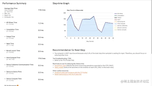 当你第一次打开剖析器时,显示的数据是来自编程模式。概述页面让你了解每一步的训练时间。当你尝试用不同的方法来提高训练性能时,这将作为一个参考,无论是通过扩展基础设施(向集群添加更多的虚拟机,使用具有更多CPU和内存的虚拟机,与硬件加速器集成)还是提高代码效率。