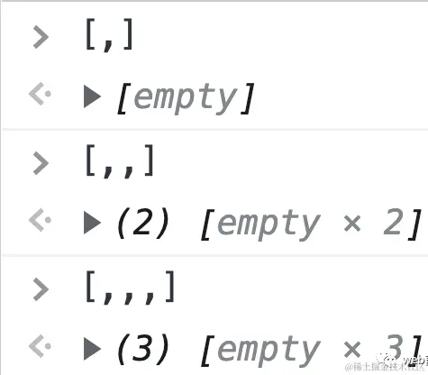[,,,] 输出一个包含三个空槽的数组,最后一个逗号是尾随逗号。