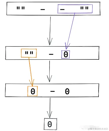 虽然加法运算符 (+) 用于数字和字符串,但减法运算符 (-) 对字符串没有用处,因此 JavaScript 将其解释为数字之间的操作,空字符串被强制转换为 0。