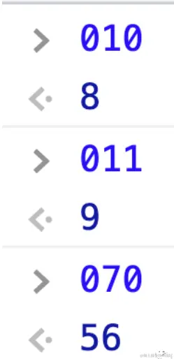 这是一个小技巧:如果一个数字以 0 开头,它在 JavaScript 中被视为八进制数。