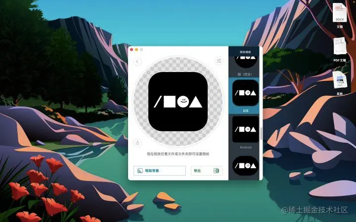 5.1 使用工具,生成 Mac 图标专有的 ICNS 格式。解决办法,使用专门的工具,比如 Image2Icon,或者在搜索引擎中使用关键词 “PNG to ICNS” 寻找图片格式在线转换工具。