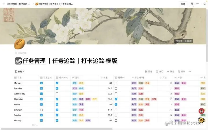 对于 Notion 这样的生产力工具而言,非常适合进行任务管理。比如,制定各种学习计划、工作计划、习惯追踪。你可以看到很多用户乐此不疲地建立各种模版,其中最重要的便是进行任务追踪。