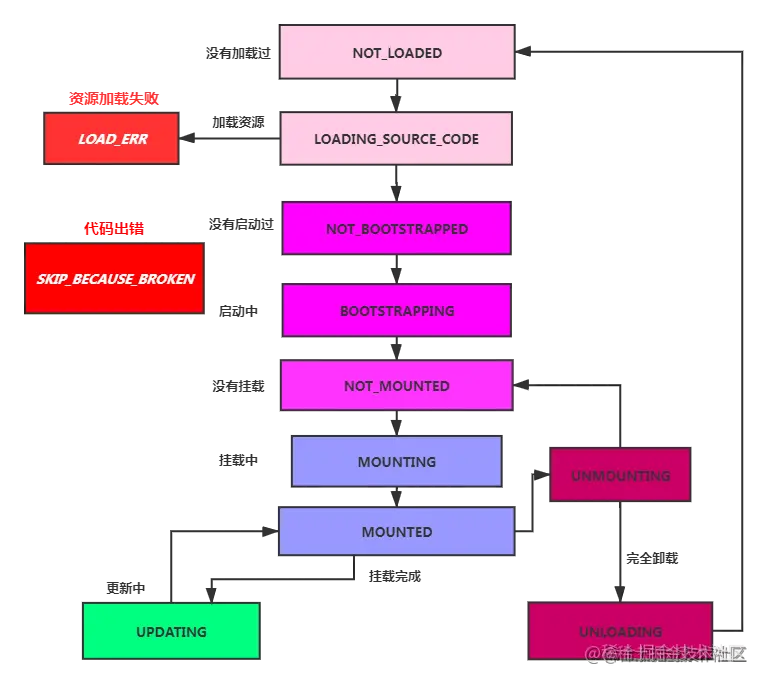 appName: 当前注册应用的名字loadApp: 加载函数(必须返回的是promise),返回的结果必须包含bootstrap、mount和unmount做为接入协议activityWhen: 满足条件时调用loadApp方法customProps:自定义属性可用于父子应用通信