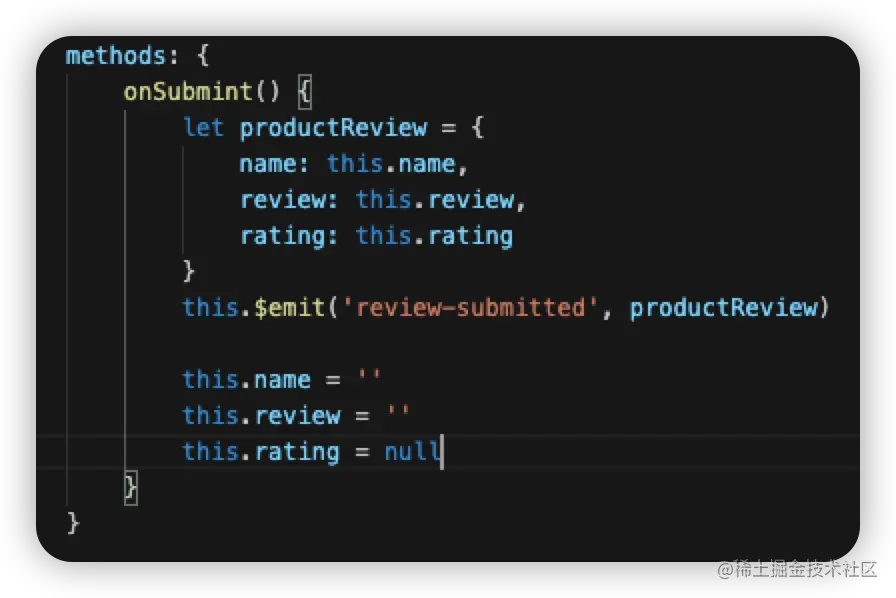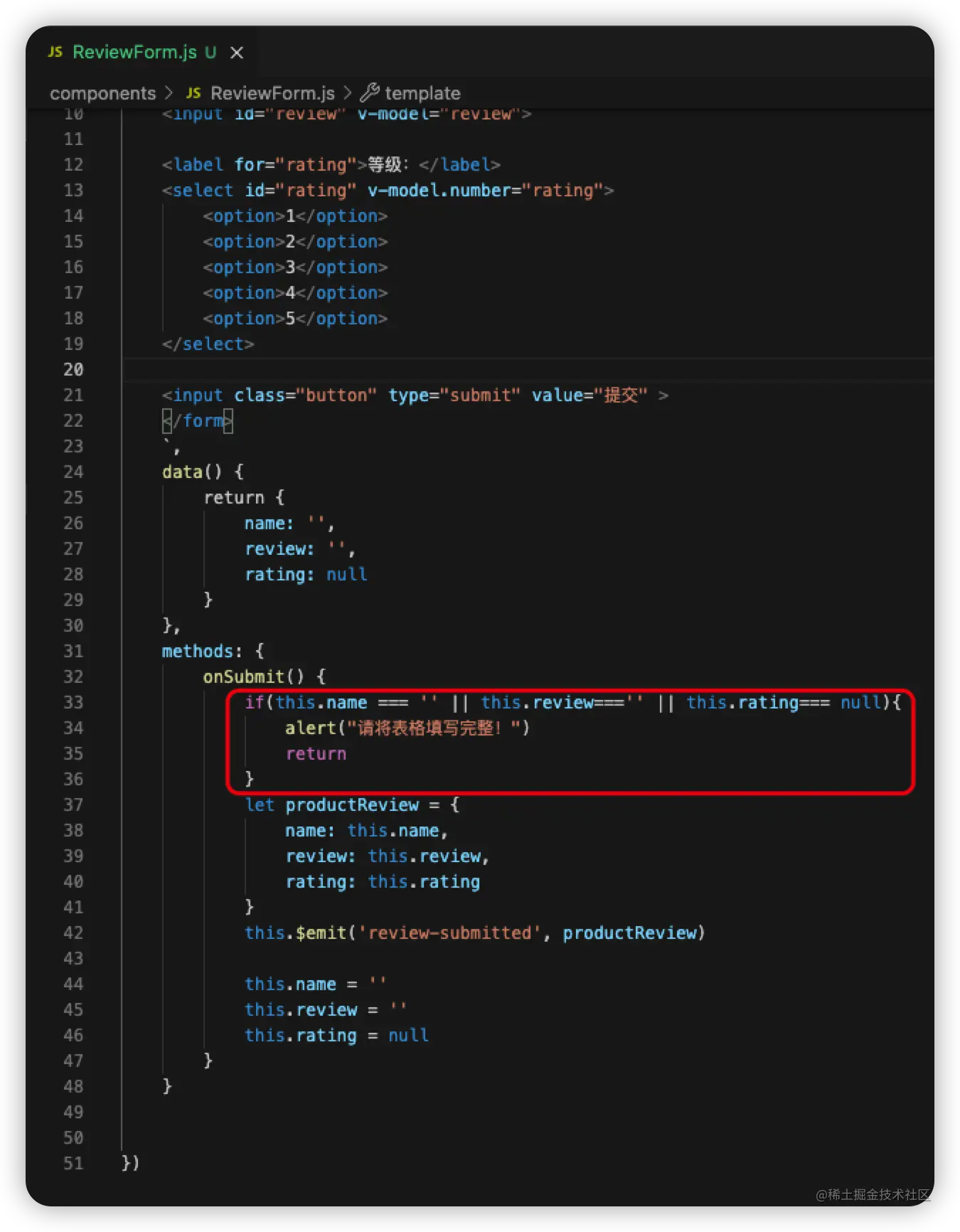 if(this.name === '' || this.review==='' || this.rating=== null){