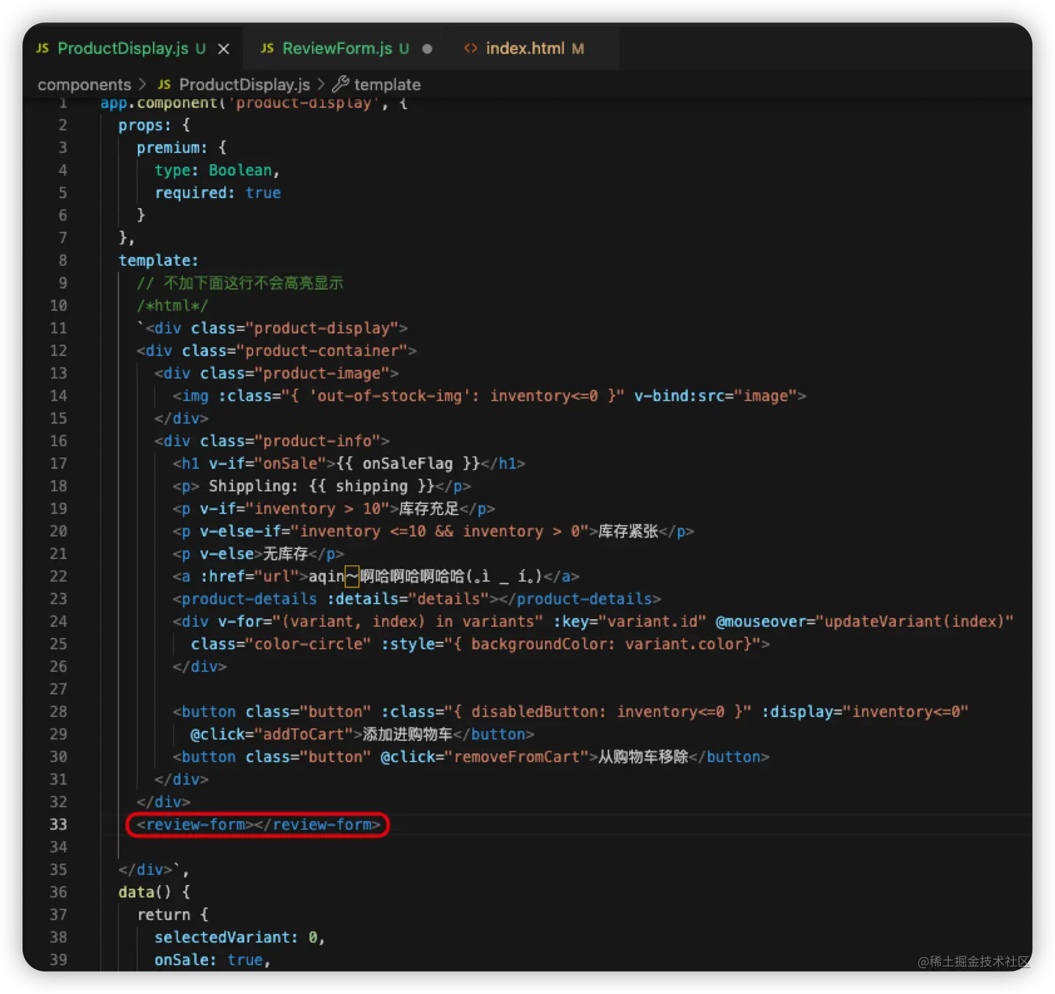 - 新建📄components/ProductDisplay.js文件并添加如下表格显示数据相关代码