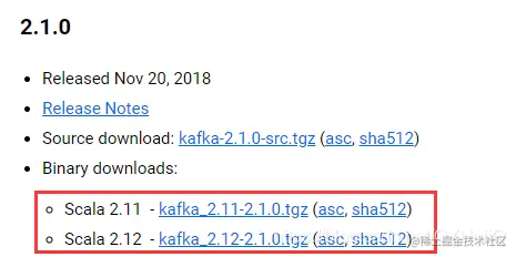 曾经有一个疑问,kafka是用Scala开发的,为什么有的地方会提到下载kafka的版本要和Scala的版本保持一致,而有的地方在下载kafka的时候没有提到要下载Scala。如上图所示,前面的2.11是Scala的版本,后面的2.1.0是kafka的版本。