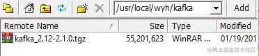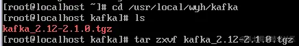 3.在Linux中创建一个文件夹,这里我创建的是/usr/local/wyh/kafka,将下载好的kafka安装包放在该路径下: