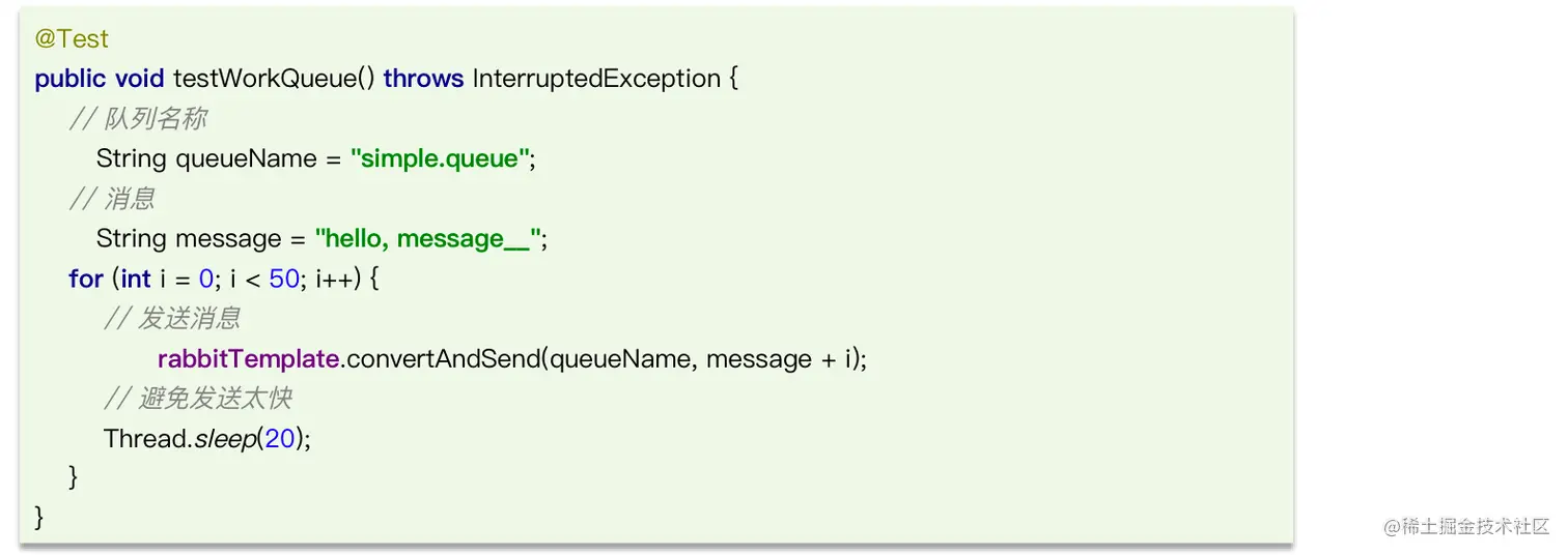 在publisher服务的SpringAmqpTest类中添加测试方法: