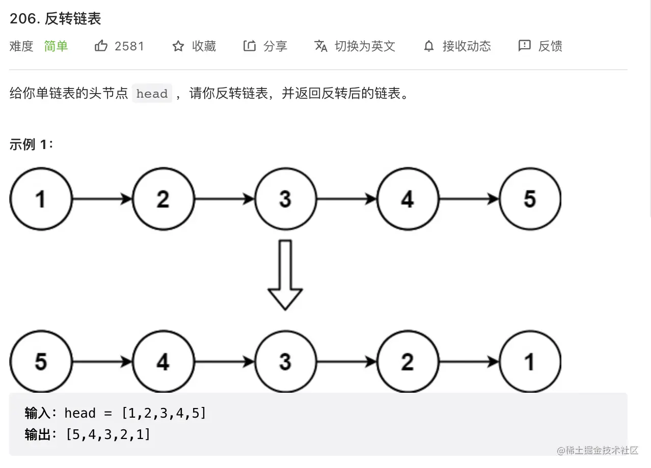 今天打卡的算法题是 —— LeetCode 206.反转链表