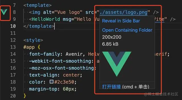 - 特性:无论是在 HTML 标签中还是在 style 中引入的图像都能在编辑器的间隙中和鼠标悬停时预览
