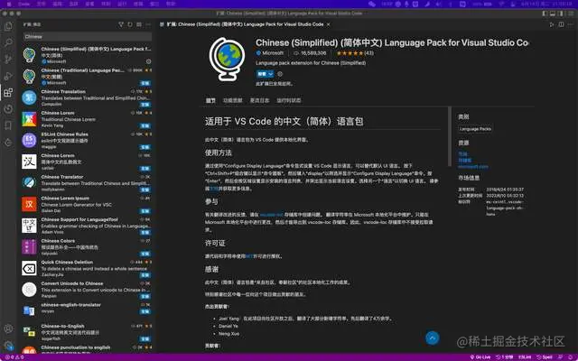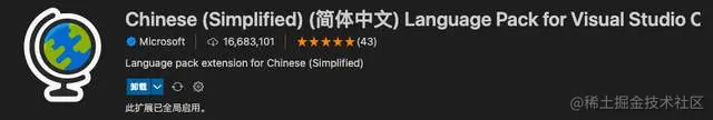 - 插件名:Chinese(Simplified)(简体中文)Language Pack for Visual Studio Code
