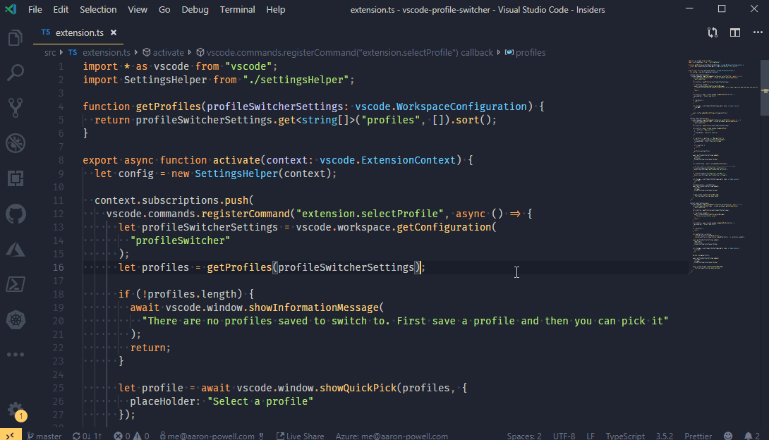 - 特征:该扩展引入了四个可以从命令面板使用的新命令。所有命令都以Profile Switcher