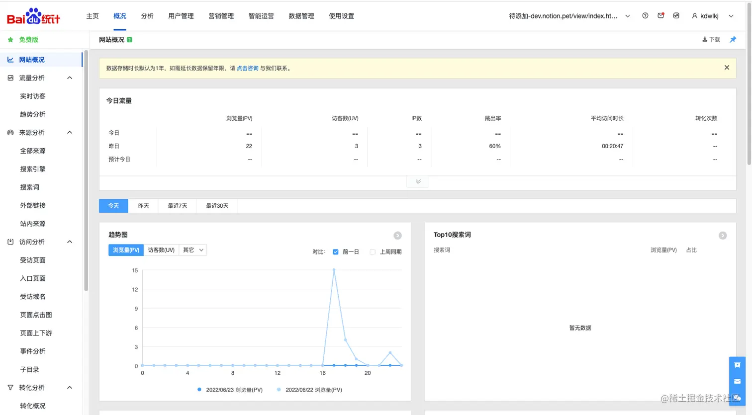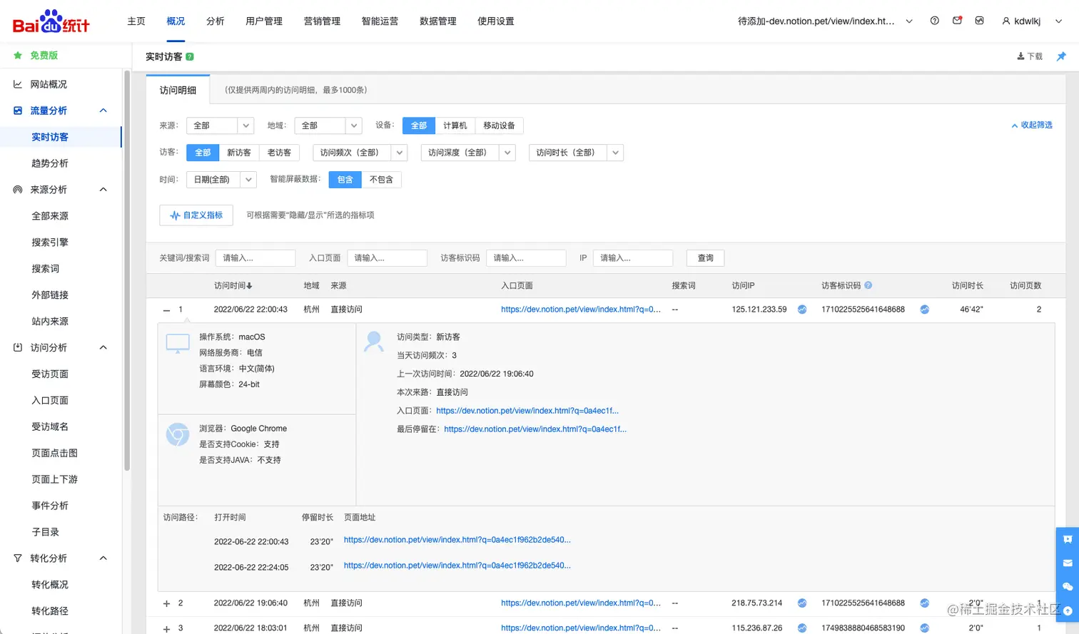 10分钟后就可以正常看到用户访问数据啦!