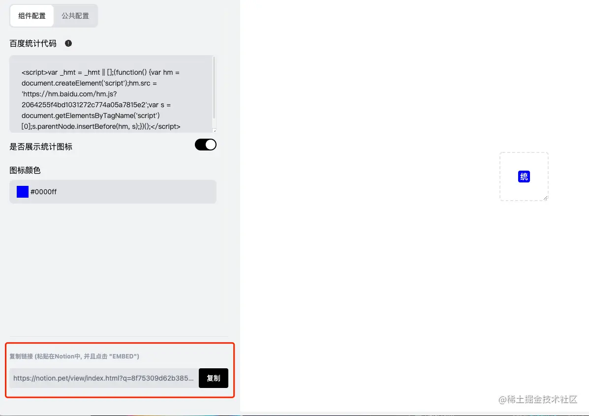 返回复制NotionPet百度统计组件嵌入URL