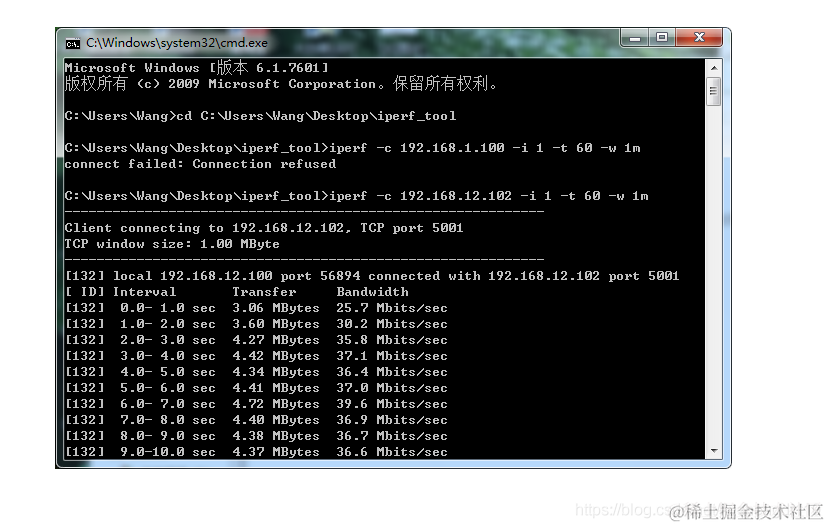 WIFI吞吐量测试 Leeson 2022-06-23 128 阅读1分钟 输入 iperf_-c_IP_-i_1_-t_100 iperf -c 192.168.1.100 -i 1 -t 60 -w 1m 电脑端,执行iperf -s 盒子端,执行上述命令 15/8188 3.91/ap62x2 6.66/ap62x2-2