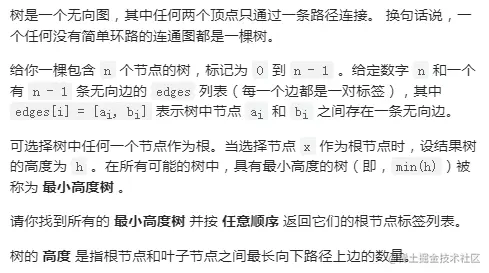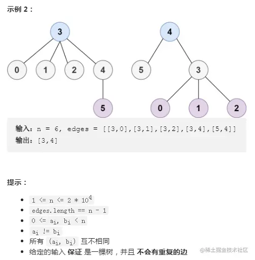 - 然后找到节点 与节点 的路径的最中间的节点即为最小高度树的根节点