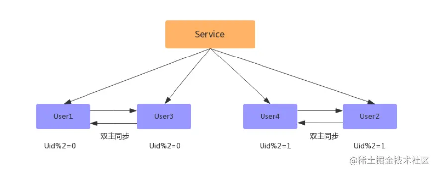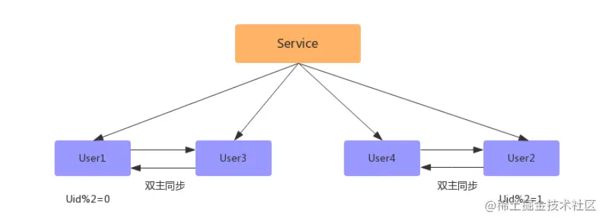 此方案能够实现n库扩2n库的平滑扩容,增加数据库服务能力,降低单库一半的数据量。其核心原理是:成倍扩容,避免数据迁移。