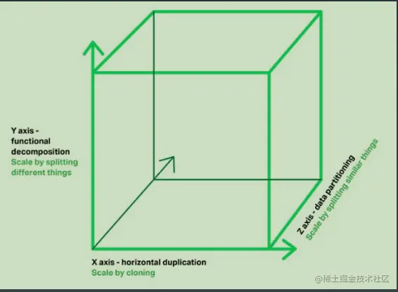- Y轴:通过解耦不同功能复制,业务拆分