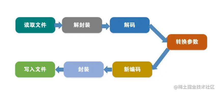 段落引用分辨率修改:输入音视频文件—>解复用得到视频流—>视频流解码–>视频帧画面–>图像帧修改分辨率–>编码—>封装–>生成文件