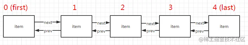 这是一个双链表的结构,有 prev 前置指针和next 后置指针。