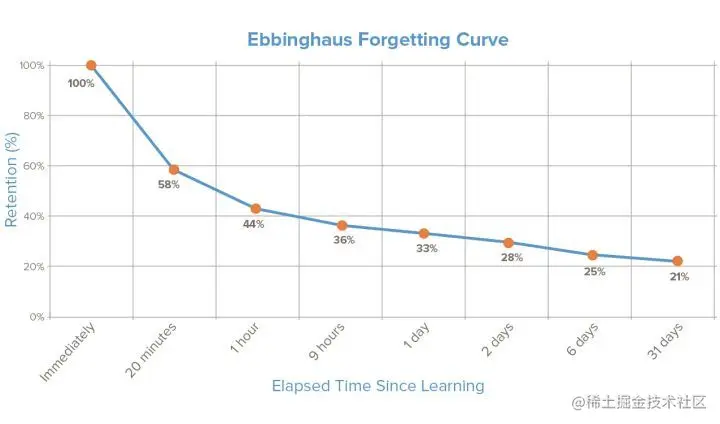 间隔重复和主动回忆已经是记忆领域的核心概念。很多人通过这两种学习方法提高自己的记忆力和理解能力。正如认知心理学家早已经指出的多个发现,随着时间的推移,人们的记忆里会衰减。对此,想想多数人熟悉的艾宾浩斯遗忘曲线吧。