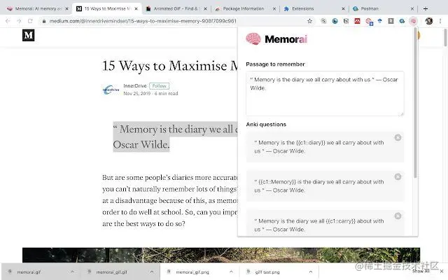 2.其他插件。推荐使用 Memex 、Spaced Repetition和 Memorai . 这三个插件允许你快速将当前的阅读内容、网页链接添加至插件,并且生成专门的阅读列表和回顾列表。