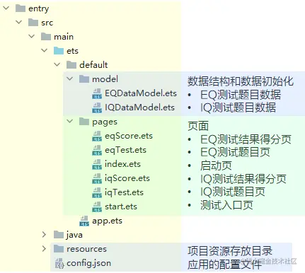 - ets/default/module目录下的eTS文件,用于定义IQ和EQ测试题目数据。