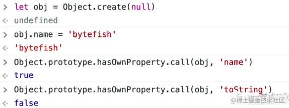 但是这种写法有个缺点,就是如果对象是用Object.create(null)创建的话,那么就不能用这个方法了。