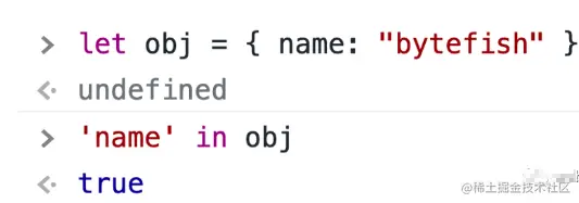 如果指定属性在指定对象或其原型链中,则 in Operator 返回 true。