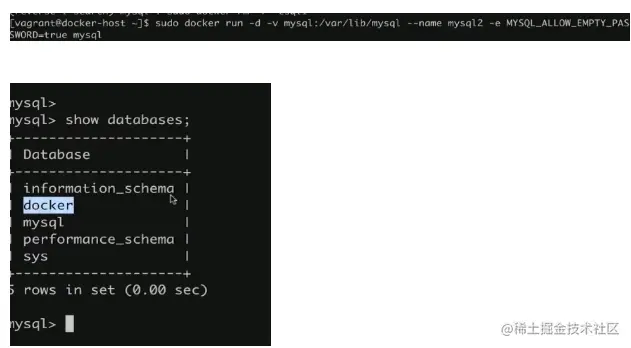 上述就是把mysql的数据挂载到/var/lib/mysql目录下面。