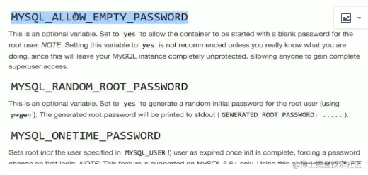 sudo doceker run -d --name mysql1 mysql -e MYSQL_ALLOW_EMPTY_PASSWORD=true mysql