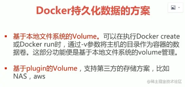 但是容器层写的数据仅限于container,例如我们停掉某个容器删除,那么这个数据就没了。但是我们可能有一个数据库的container,这个数据库肯定要读写数据文件,是以文件形式存储在本地,如果我们不小心删掉容器,数据就没了。。。 -》 要保存住这个数据!