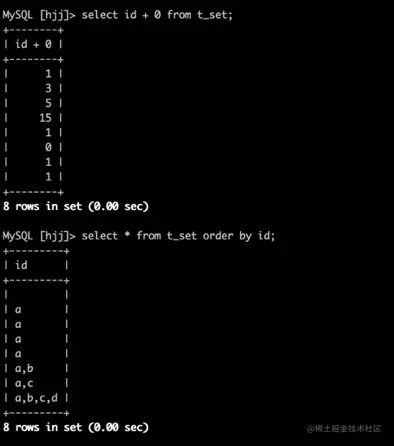 - MySQL以数字来存储SET值。存储值的地位对于第一个SET成员。如果在数字上下文中检索SET值,则检索到的值具有与组成列值的集合成员相对应的位集合。可以通过如下方式来检索值: