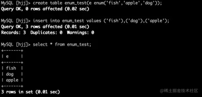 因此,如果使用数字作为ENUM枚举常量,这种双重性很容易导致混乱。例如,ENUM(‘1’,’2’,’3’)。建议尽量避免这么做。
