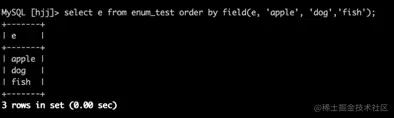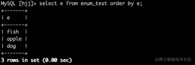 另外一个比较特别的地方是,枚举字段是按照内部存储的整数而不是定义的字符串进行排序的: