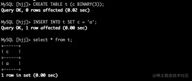 示例:对于列BINARY(3),‘a’在插入的时候会变成‘a \0’, ‘a\0’在插入的时候变成‘a\0\0’。两个插入的值在检索的时候保持不变。