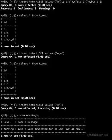 - 检索到后,SET将使用列定义中使用的字母大小写来显示存储在列中的值。请注意,SET可以为列分配一个字符集和排序规则。对于二进制或区分大小写的归类,在为列分配值时考虑字母大小写。