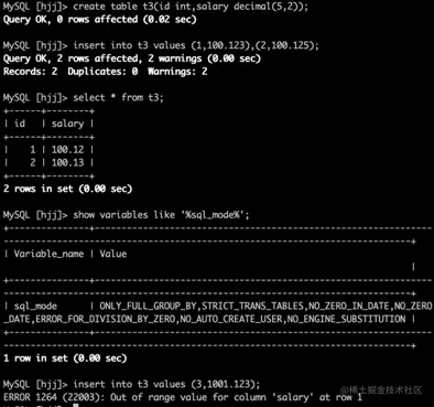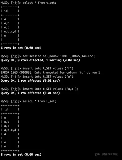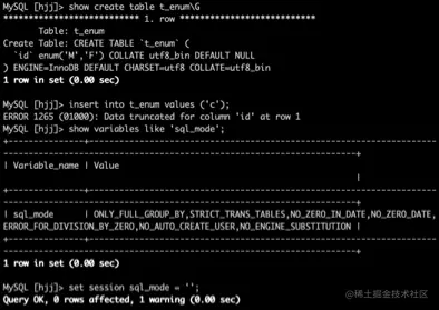 注:在本章节中所提到的严格模式,指的是STRICT_TRANS_TABLES和STRICT_ALL_TABLES两个中的一个启用或者都启用。