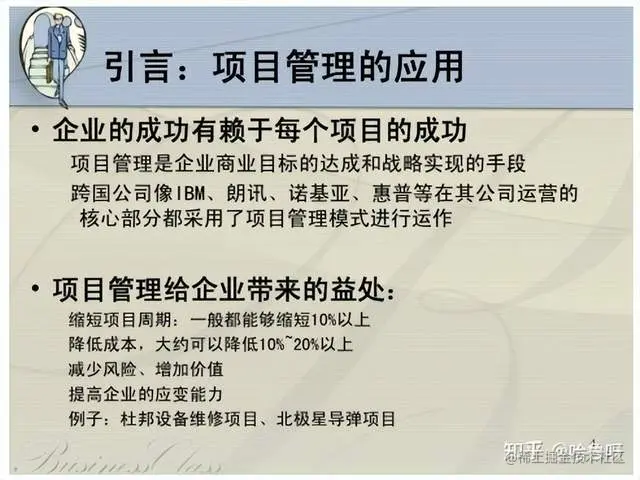 内容包括如何全面铺设项目管理组织,转向“以项目为中心”。同时,通过一系列的政策、标准和规定统一项目管理语言,建设项目管理流程体系。