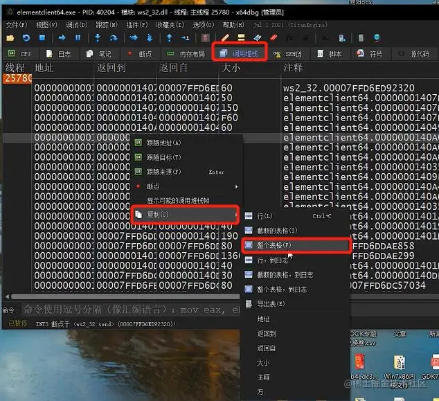 4.点击调用堆栈,找到断点,复制整个表格