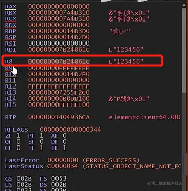 9.9把rcx、rdx、r8、r9参数复制下来,可以确定r8是字符串地址