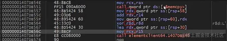 8.返回到是Nop,它的上一层就是调用的call,可以看到有三个参数rdx、r8d(r8的32位)、rcx(在64位类似fastcall,它的前四个参数分别是rcx、rdx、r8、r9)