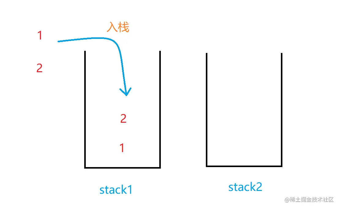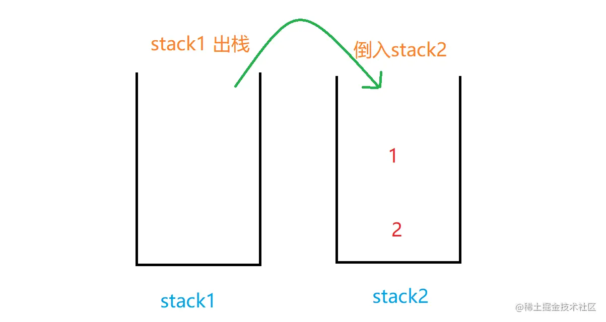 - 每次将元素都 push 进 stack1 这个栈, pop 操作就弹出 stack2 的栈顶元素即可