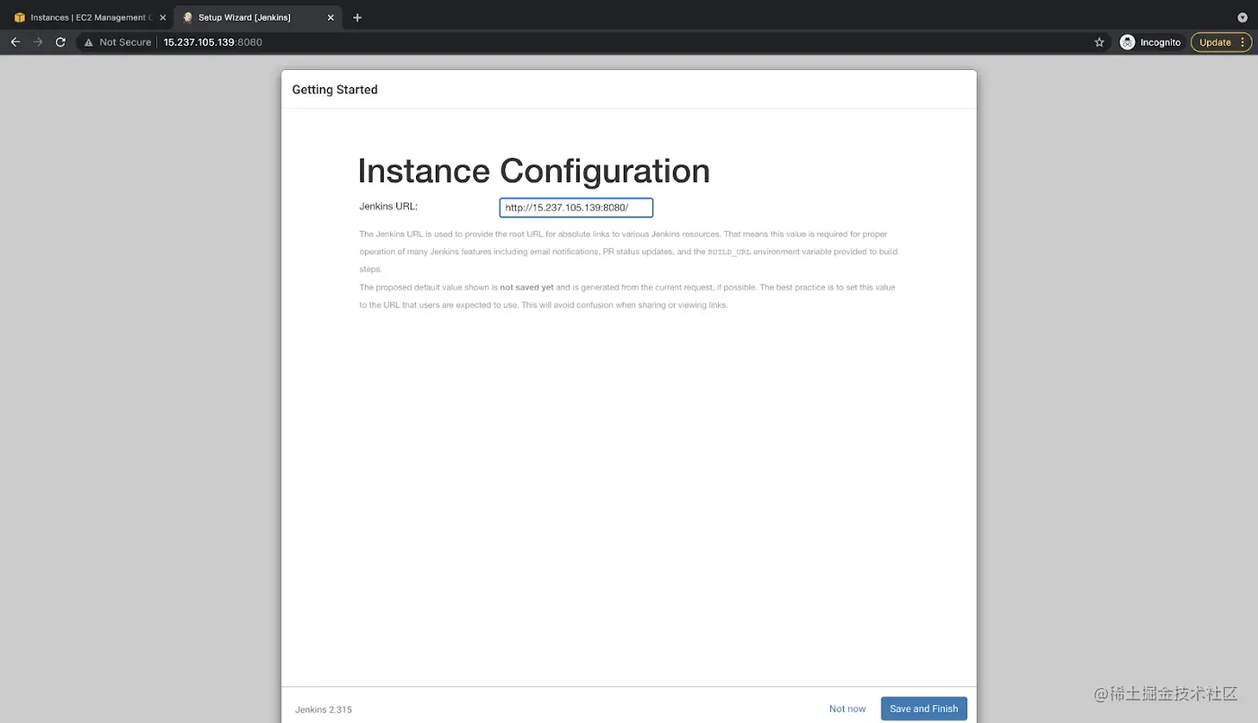 我特意保留了这一点,以便向你展示将 "jenkins "用户添加到EC2实例的 "docker "组中的必要性。