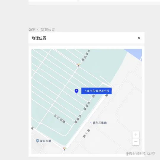 需求:如下图 点击element的表格的地址打开一个弹框展示地理位置,不需要搜索框。