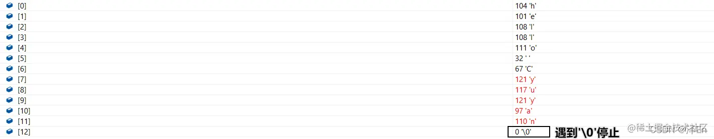 🍎⒉注→'\0'实际上也是对应着C语言的空字符NULL十进制为0的值。