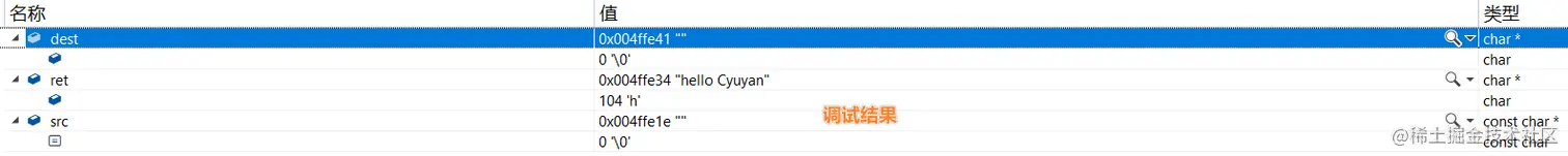 //dest指向的是'\0'