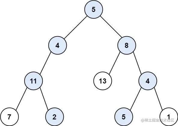 输入:root = [5,4,8,11,null,13,4,7,2,null,null,5,1], targetSum = 22