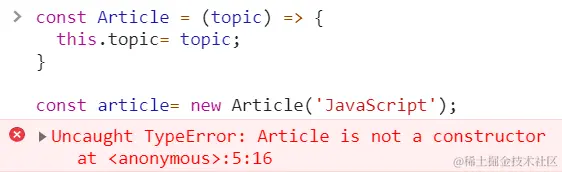 然而,箭头函数不能作为构造函数使用。