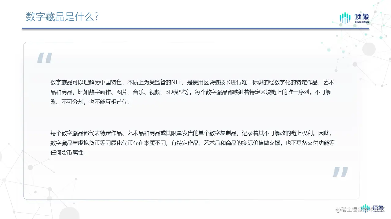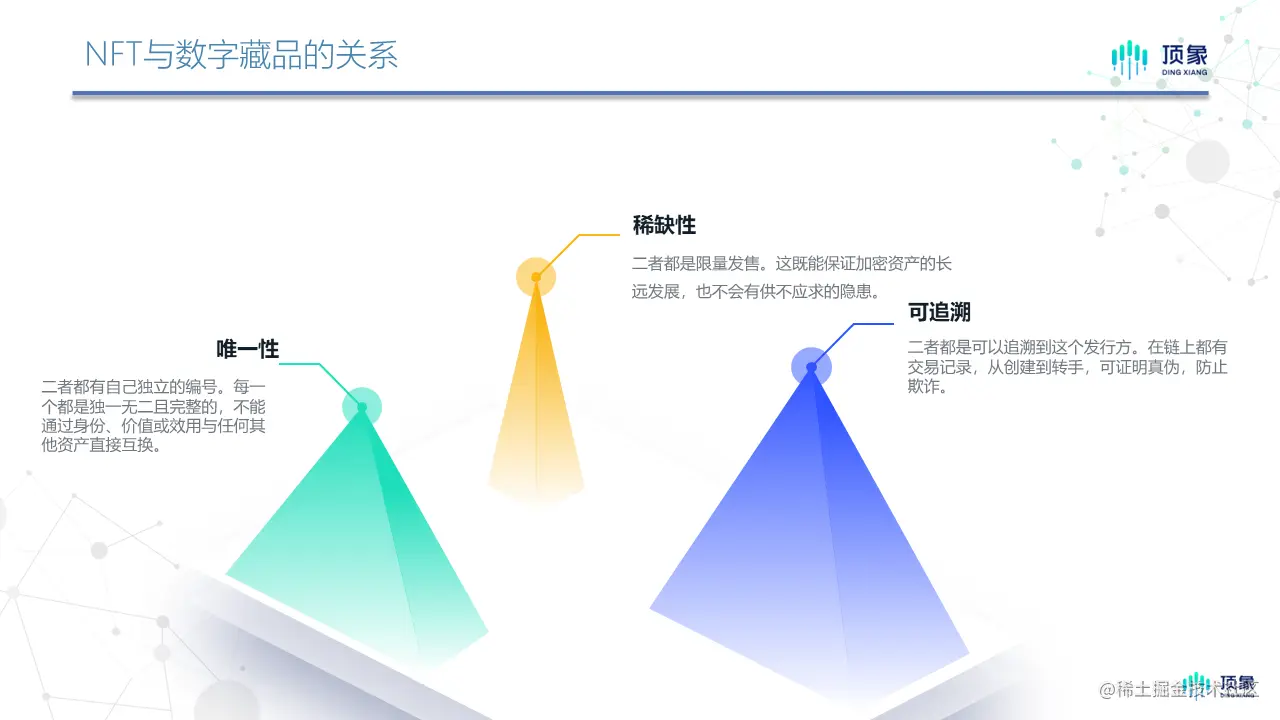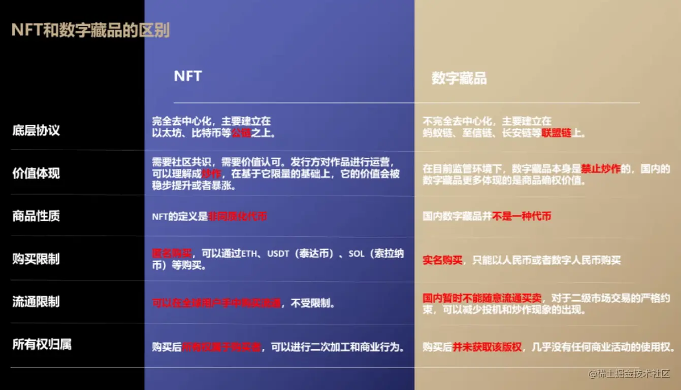 数字藏品之于NFT的具体区别,主要将其金融属性和交易属性相对弱化。(如图)